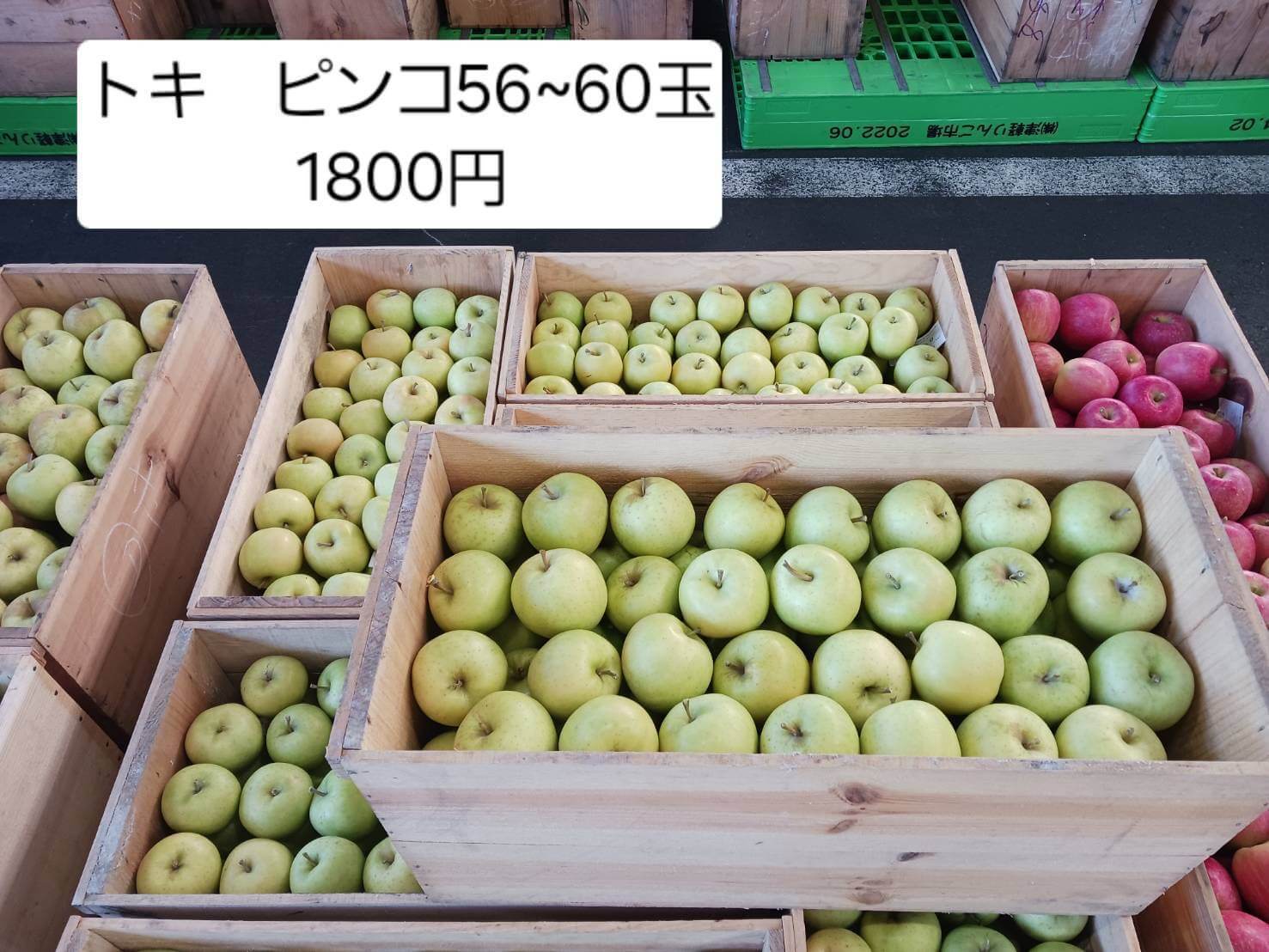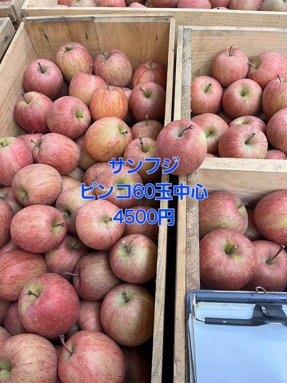 「サンふじ」の2番手の色目のピンコ(60玉中心)が4500円していることを知らせる画像 |