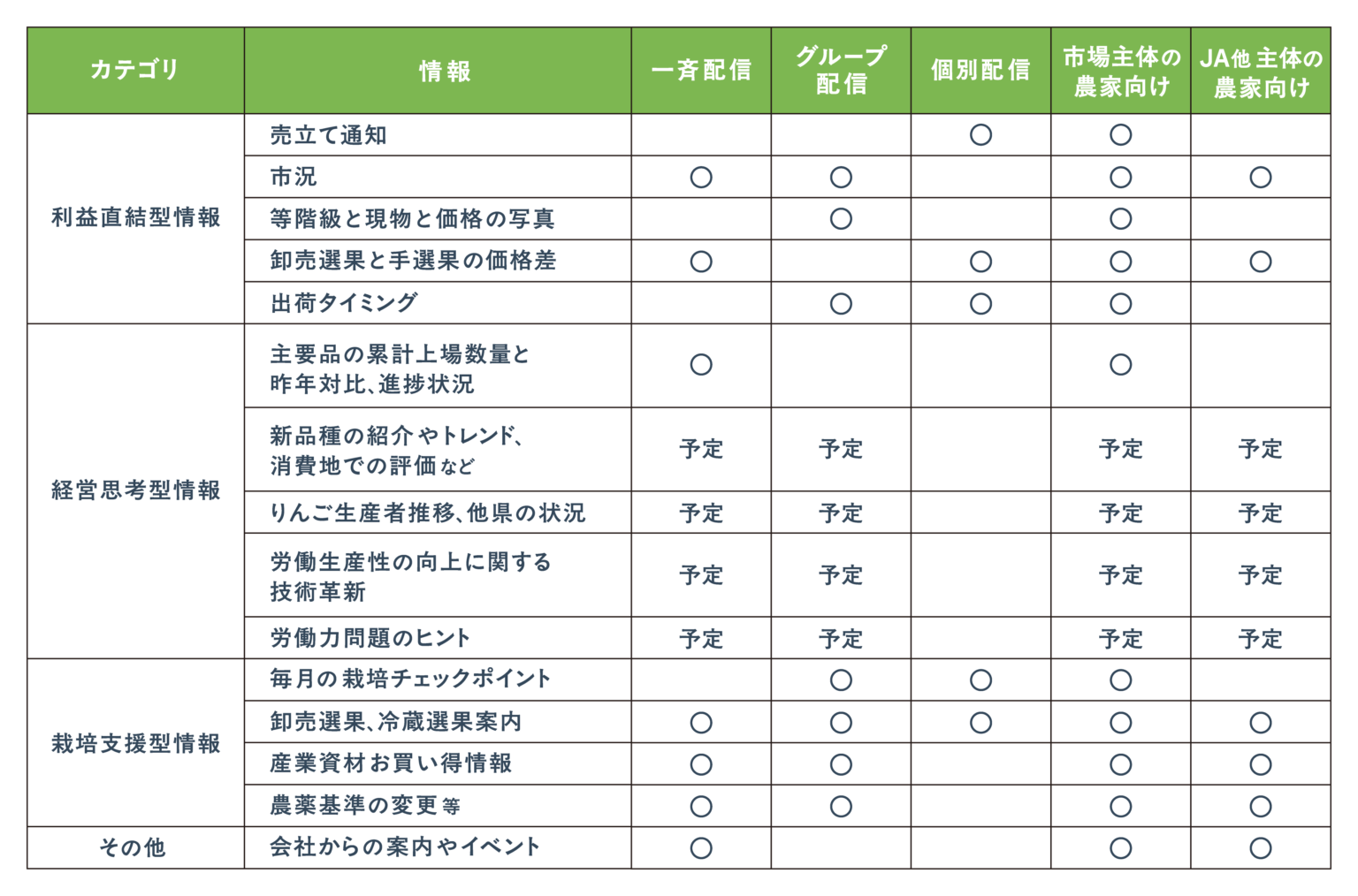 生産者が経営思考型の情報でどのようなものを欲しているのかについては、実は生産者自身も最初のうちは分かっていないのかもしれません。ですので、弊社側で「おそらくこんな情報があると便利なのでは?」と推測しながら情報を発信し、「反響の良かったもの=生産者にとって有益な情報」として残すなどの工夫をしています。