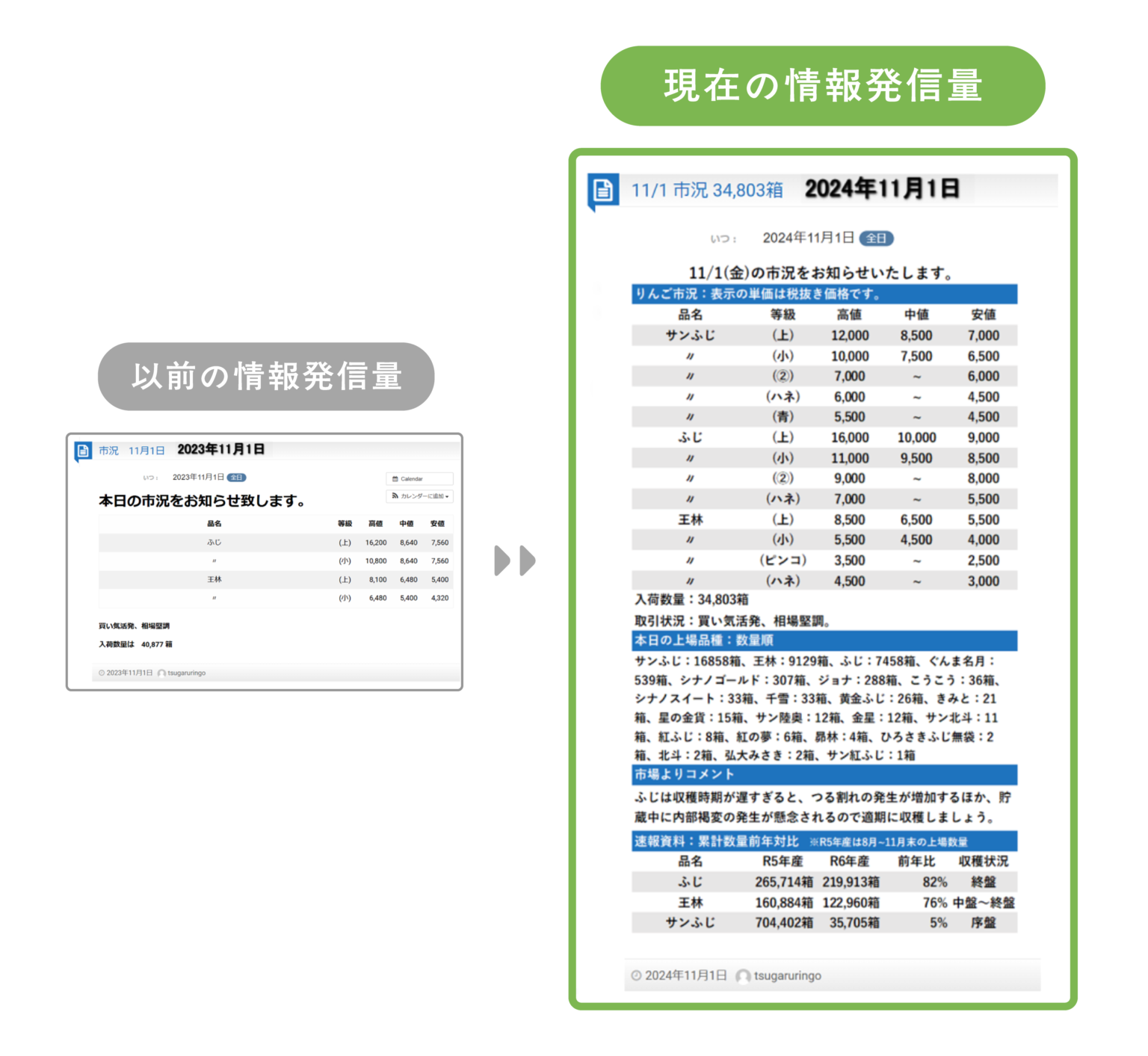 図1:情報発信量の比較(津軽りんご市場 HPより)
