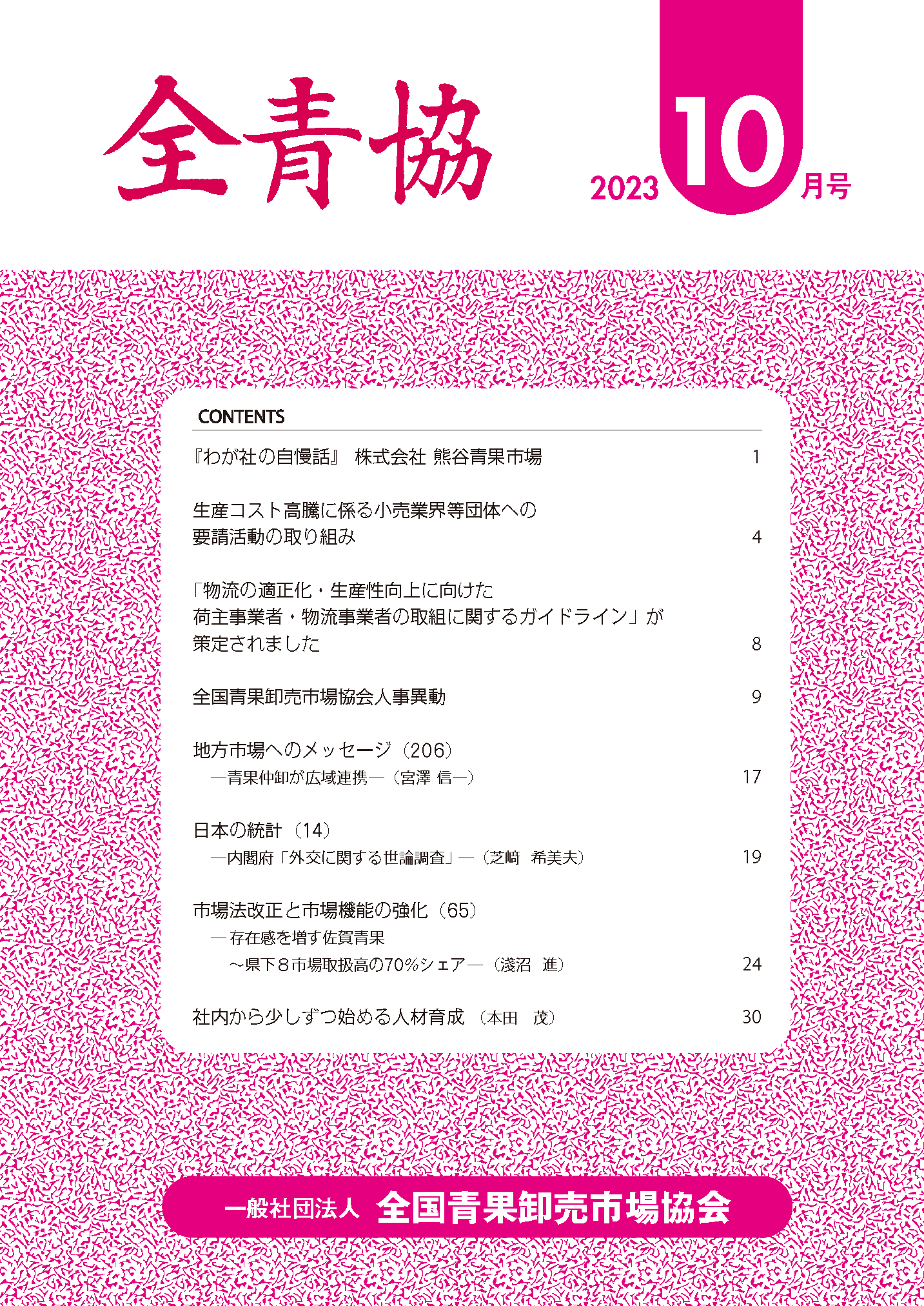 ※本記事は、一般社団法人全国青果卸売市場協会が発行している機関誌『全青協』(令和4年12月1日発行、通巻627号)掲載の「わが社の自慢話」を転載したものです。